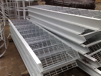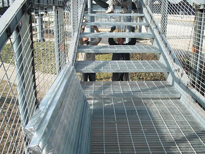 樓梯鋼格板是由鋼格板加工而成的(鋼格板是用扁鋼按照一定的間距和橫桿進行交叉排列,并且焊接成中間帶有方形格子的一種鋼鐵制品)。該產品表面一般用熱鍍鋅、電鍍鋅處理。